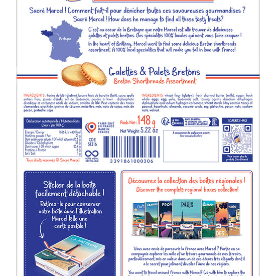 Ce coffret cache un trésor gourmand typiquement breton : de délicieuses galettes et palets au sel de Guérande. Fabriqués dans le respect des recettes traditionnelles, ces biscuits allient la richesse du beurre breton à la subtilité du sel marin, pour une dégustation à la fois douce et pleine de caractère. Une pause sucrée-salée qui évoque les embruns, les falaises et les goûters au grand air.