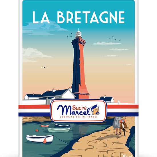 Solitaire face aux vents et aux marées, le phare breton est un symbole fort de la côte ouest française. Avec la boîte métal "Phare de Bretagne", Sacré Marcel rend hommage à ces sentinelles de pierre, fidèles gardiens de l’horizon. À travers une illustration rétro élégante, cette boîte capture l’âme maritime bretonne dans un objet à la fois esthétique et gourmand, idéal à offrir en souvenir ou à collectionner.