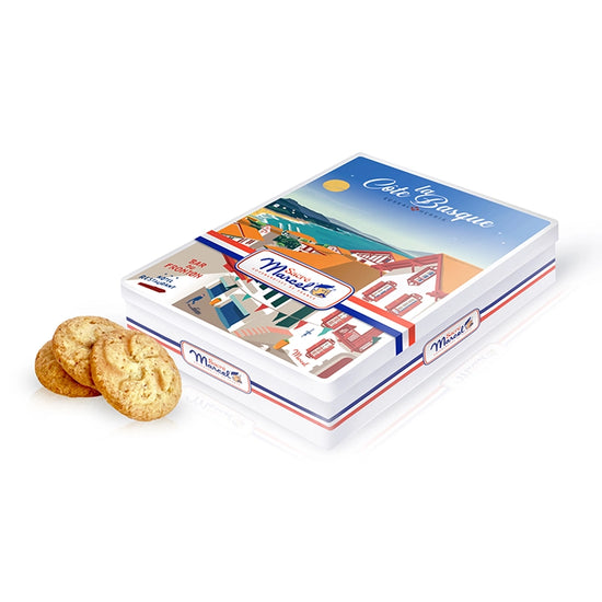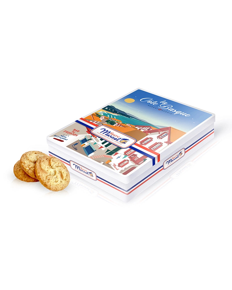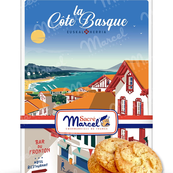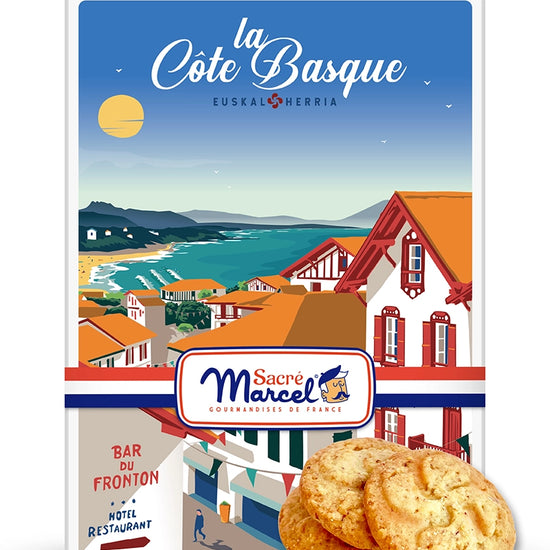 Véritable souvenir de la Côte Basque, cette boîte métal illustrée est bien plus qu’un coffret de biscuits : c’est une invitation à découvrir une région au caractère bien trempé, mêlant patrimoine, art de vivre et saveurs locales. À offrir à un amoureux du Sud-Ouest, à collectionner ou à exposer dans sa cuisine, cette création signée Sacré Marcel conjugue authenticité, esthétique et plaisir sucré.
