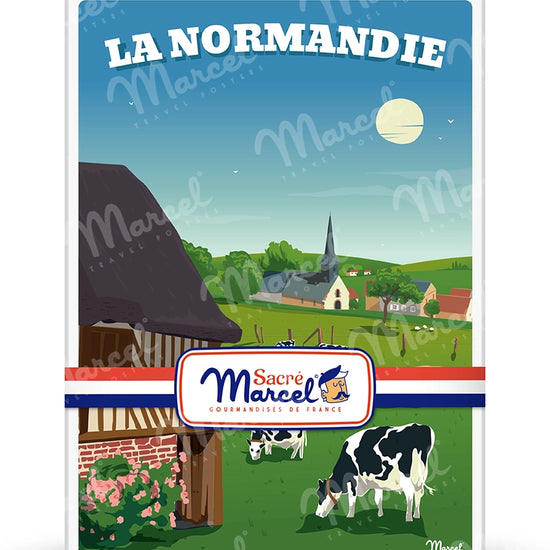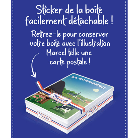 La boîte reprend les codes graphiques de l’affiche LA NORMANDIE, qui célèbre la diversité des paysages normands : plages de sable ou de galets, falaises majestueuses, stations balnéaires élégantes, et vallées agricoles ondulantes. Marcel vous propose une balade visuelle rétro, dans une région riche de traditions, d’histoire, de gastronomie et de patrimoine naturel. Des lieux emblématiques et des instants de vie simples illustrés dans un style vintage intemporel.