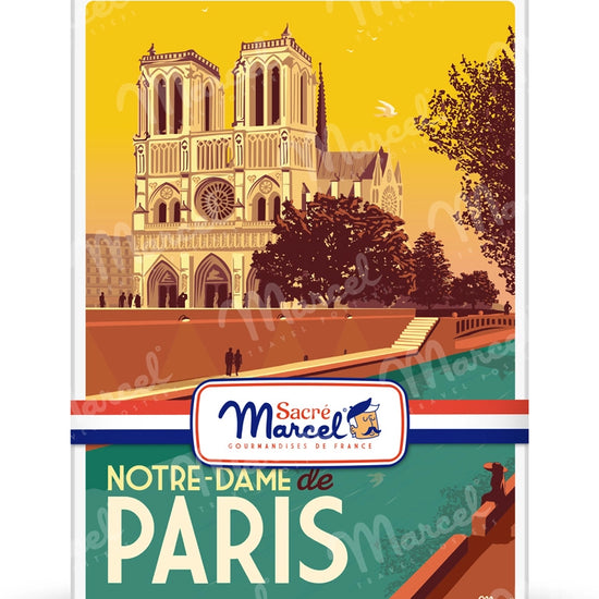Rejoignez le parvis de l’un des monuments les plus emblématiques de Paris avec cette boîte illustrée "Notre-Dame de Paris" par Sacré Marcel. Inspirée de l’affiche originale, elle vous transporte au cœur de l’Île de la Cité, à l’ombre de la majestueuse cathédrale. Cette œuvre architecturale gothique, admirée dans le monde entier, incarne la richesse de l’histoire française et continue de fasciner, même en pleine renaissance après l’incendie de 2019.