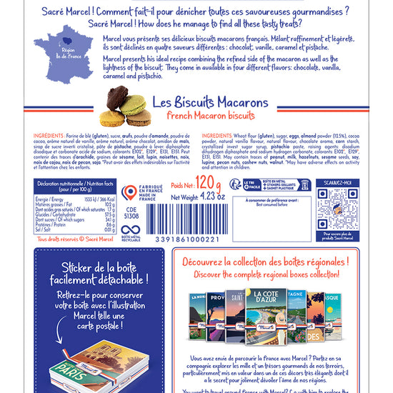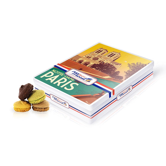 Cette boîte renferme un assortiment de macarons savoureux, aux textures moelleuses et aux arômes délicats. À la fois élégants et gourmands, ils accompagnent à merveille un thé ou un moment de partage. Offrir cette boîte, c’est offrir un souvenir de France à la fois raffiné, culturel et gourmand. Une idée cadeau parfaite pour les amoureux de Paris et du patrimoine français.