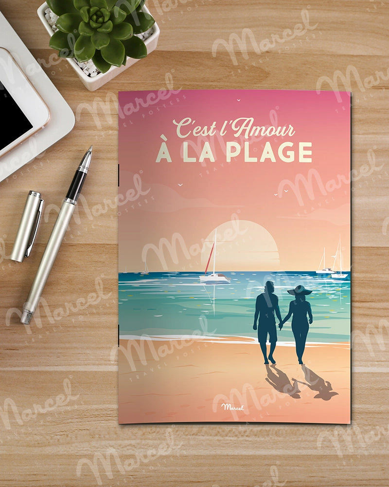 Avec le carnet de notes "C'est l'amour à la plage", Marcel avait envie de vous faire partager un coucher de soleil romantique.