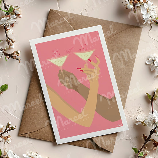 Imaginée dans notre atelier et imprimée dans les Landes sur un papier mat 450 g, la carte postale Amour Champagne fait partie de notre collection Love. Une attention délicate à envoyer, à offrir ou à garder pour soi, pour faire pétiller les émotions.