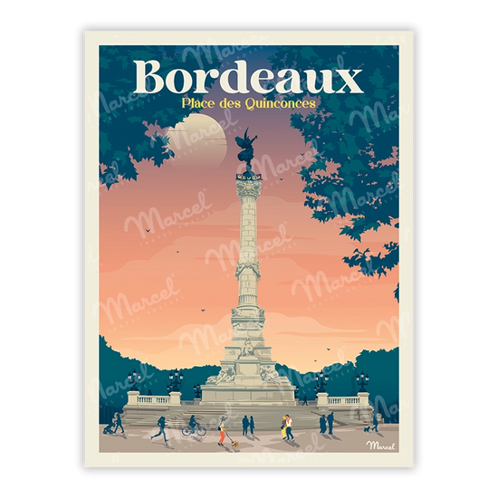 Marcel vous présente son illustration originale BORDEAUX "Place des Quinconces".