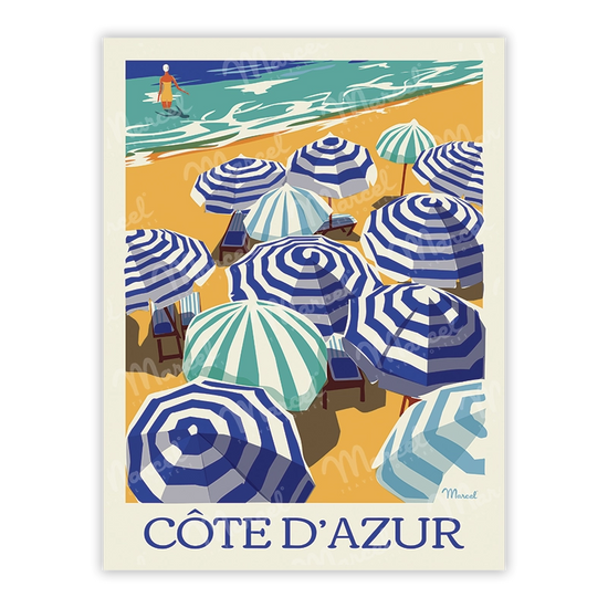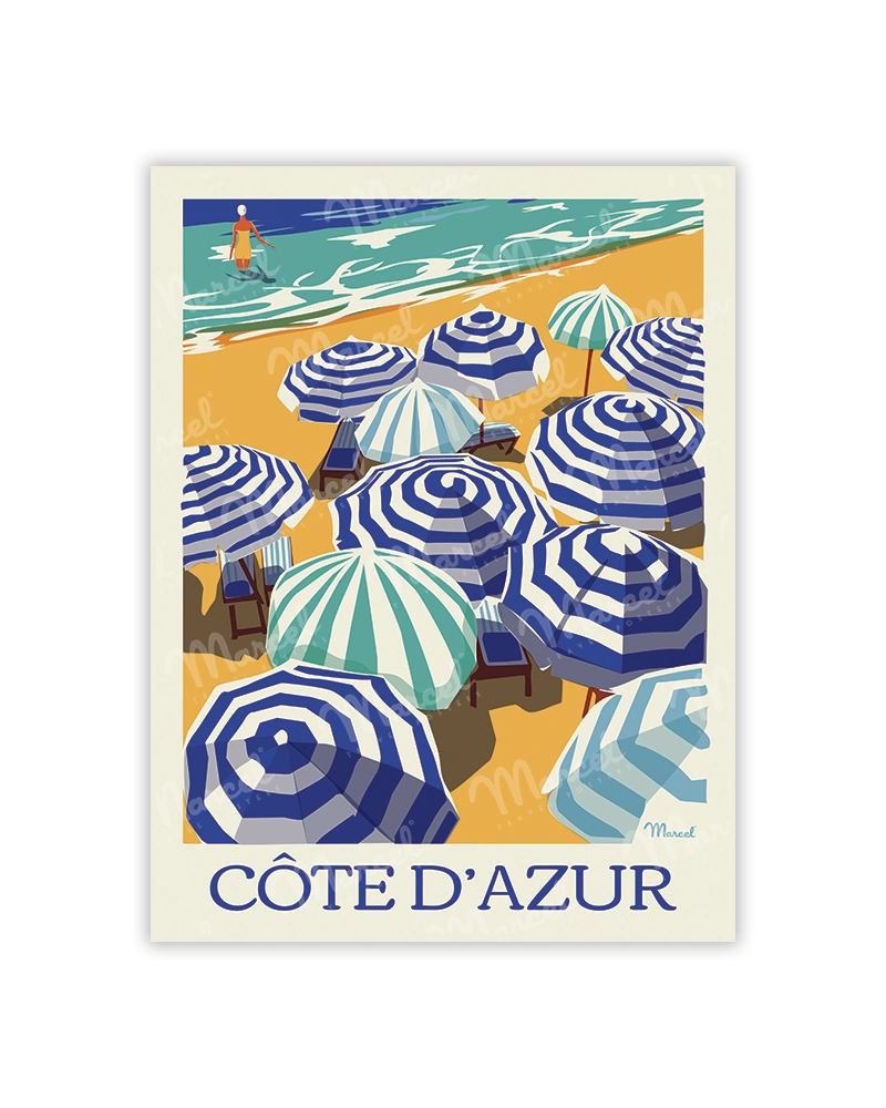 Marcel vous présente son illustration originale CÔTE D’AZUR "Les Parasols".