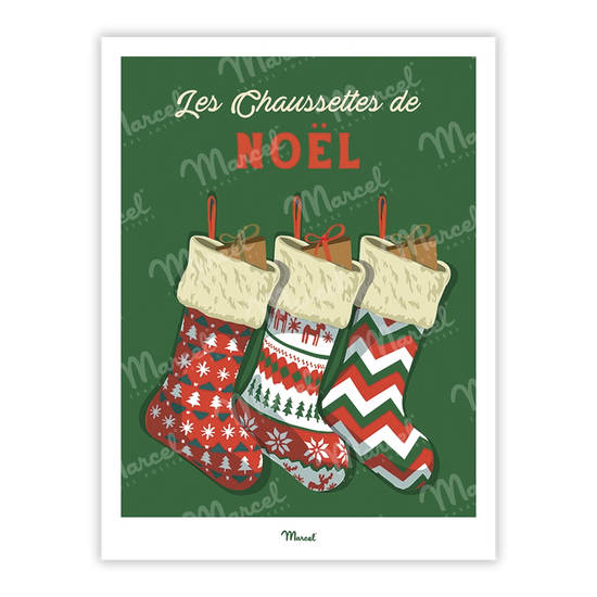 Marcel vous présente son illustration originale Travel Color "Les chaussettes de Noël".