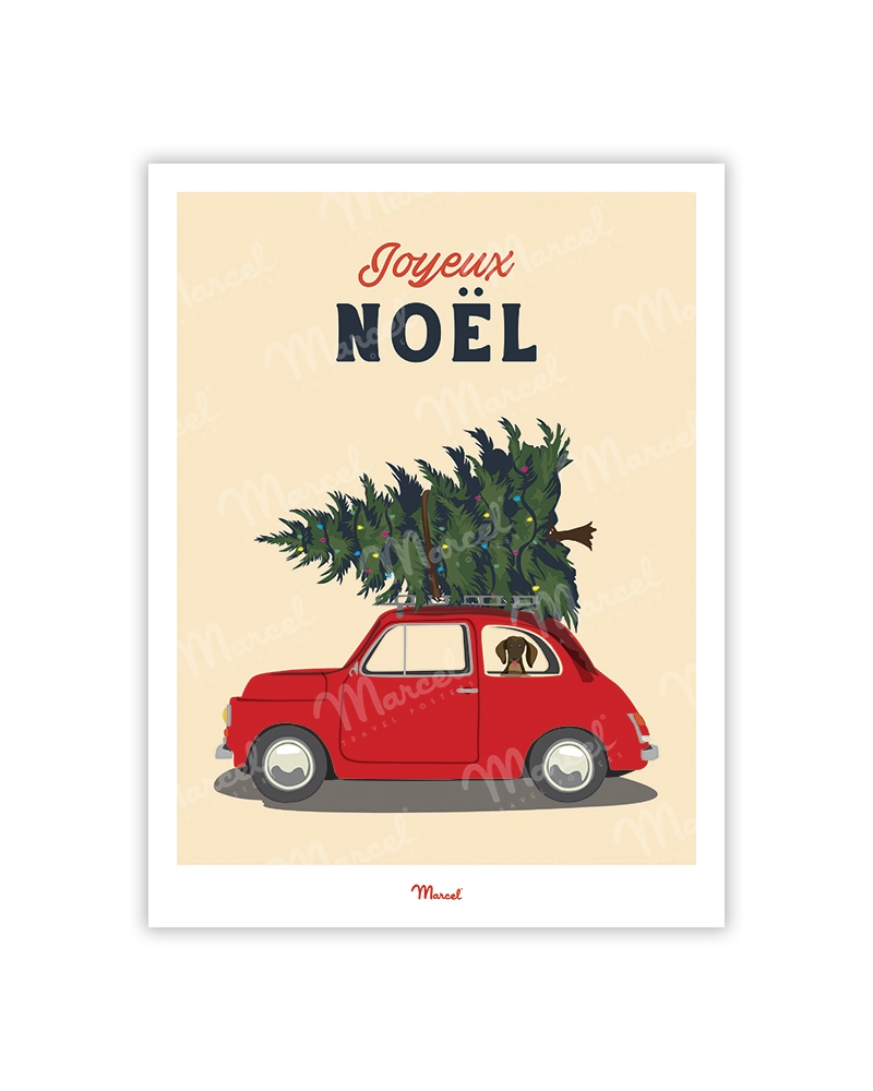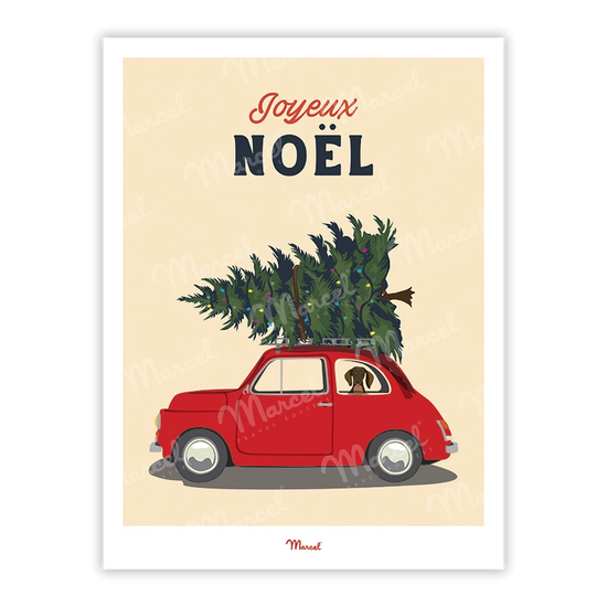 Marcel vous présente son illustration originale Travel Color "Voiture et sapin de Noël".