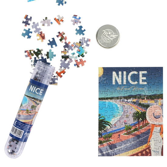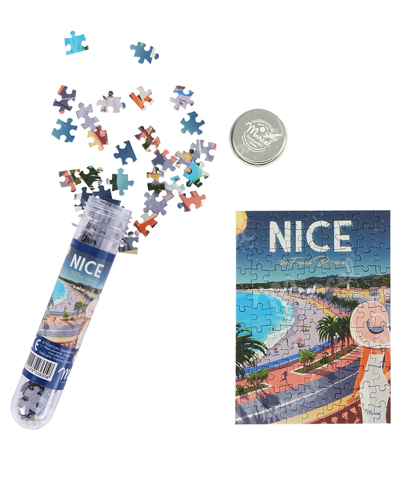 Profitez du charme de la Côte d'Azur avec ce puzzle 99 pièces NICE "French Riviera", pelliculage mat, et offrez-vous la possibilité de l’encadrer une fois terminé avec son format A6 !