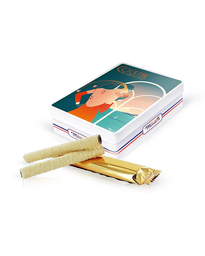 Avec son visuel chic et sa recette gourmande, la boîte métal "Cocktail chez Mademoiselle" est le cadeau parfait pour tous ceux qui aiment allier style et plaisir. Elle s'intègre dans une collection d’objets illustrés par Sacré Marcel, rendant hommage aux lieux, aux instants et aux traditions de l’art de vivre à la française.
