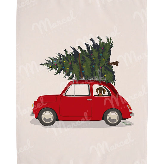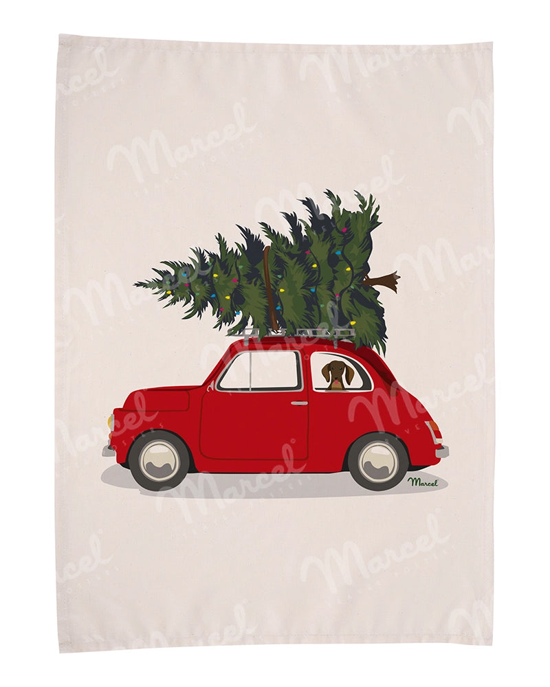 Marcel vous présente son torchon Travel Color "Voiture et sapin de Noël".